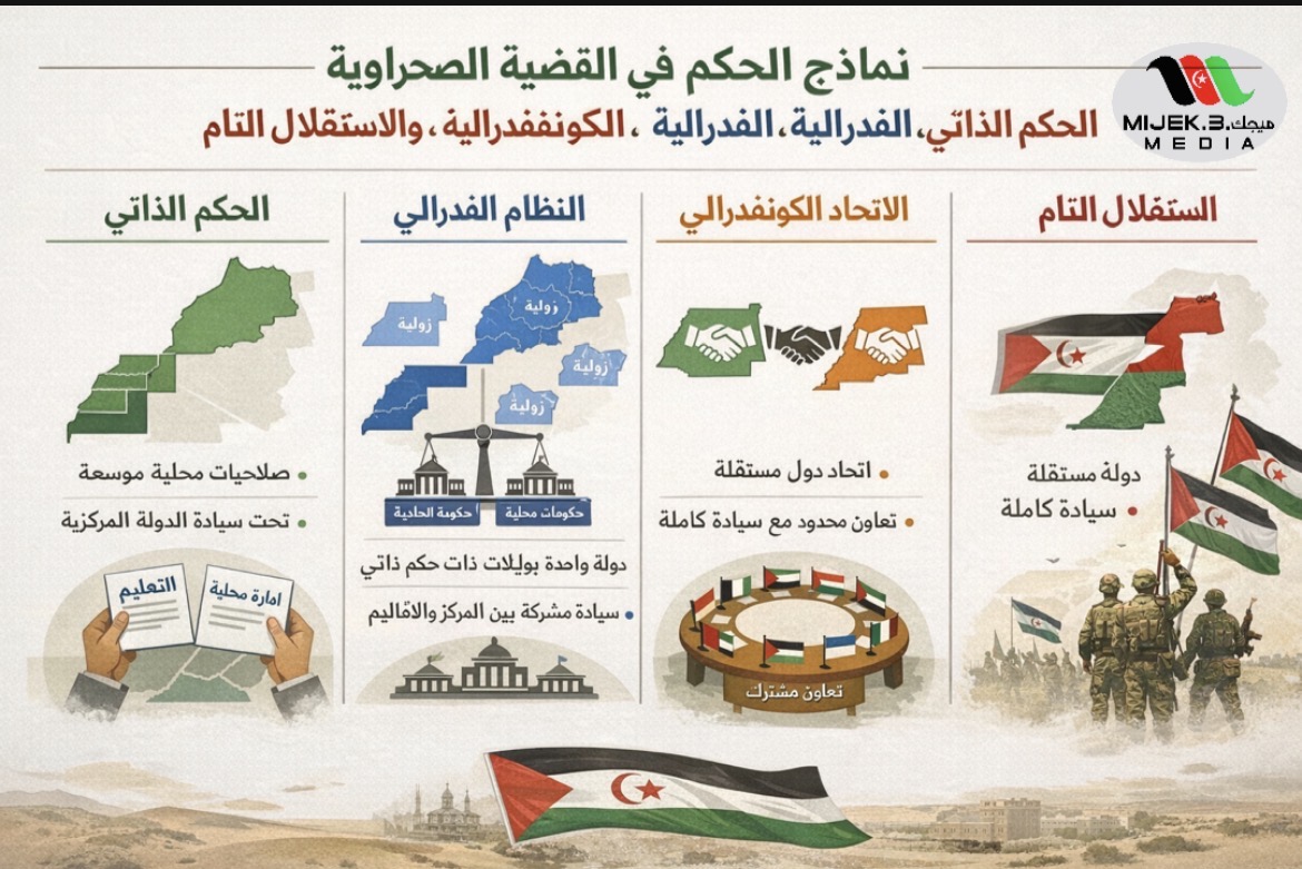 في سياق النقاش حول نماذج الحكم في القضية الصحراوية، يُستحضر عادةً أربع صيغ سياسية مختلفة: الحكم الذاتي، الفيدرالية، الكونفدرالية، والاستقلال التام. لفهم الفروق بدقة، من المفيد النظر إلى تعريف كل نموذج مدعَّمًا بأمثلة عالمية.